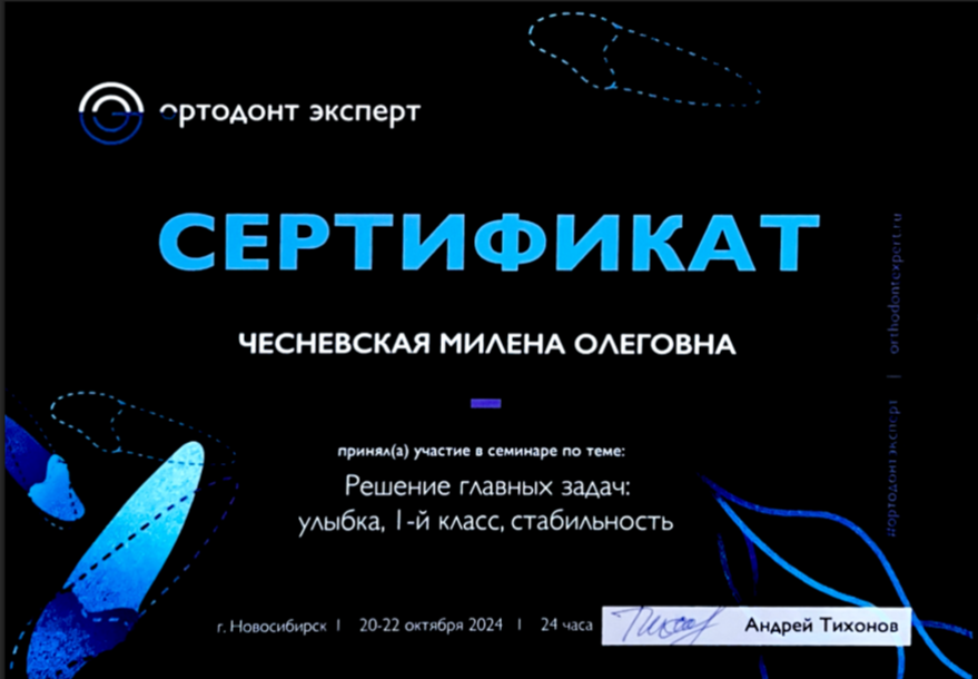 - Сертификационный курс по работе с системой прозрачных капп «Элайнеры от А до Я» - 2024 год