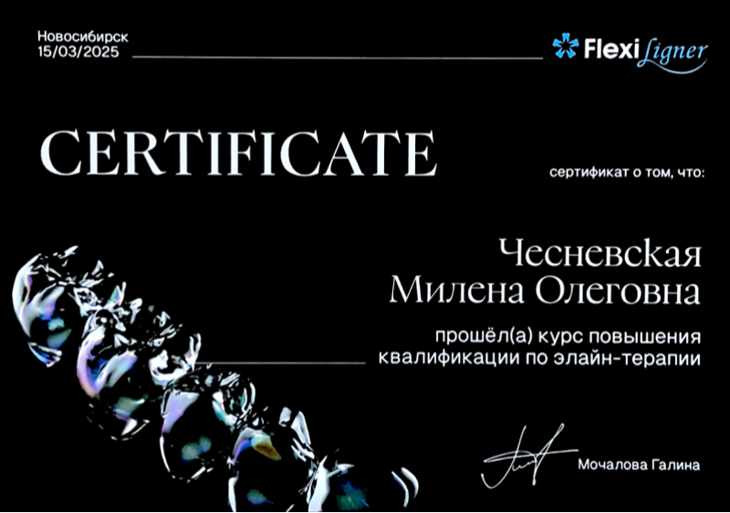 - Курс - «Повышение квалификации по элайн-терапии» - 2025 год