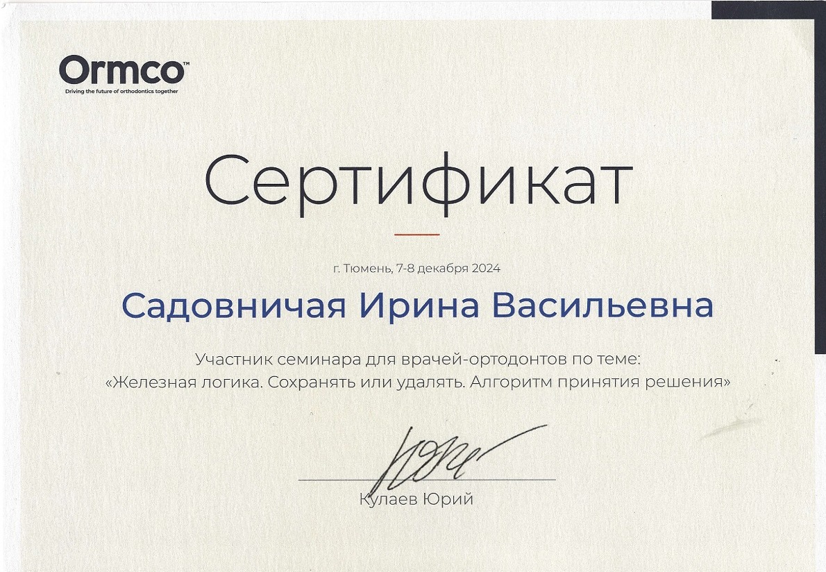 Сертификат ГБОУ ВПО ОмГМУ Минздрава России по специальности «Ортодонтия» (2023)