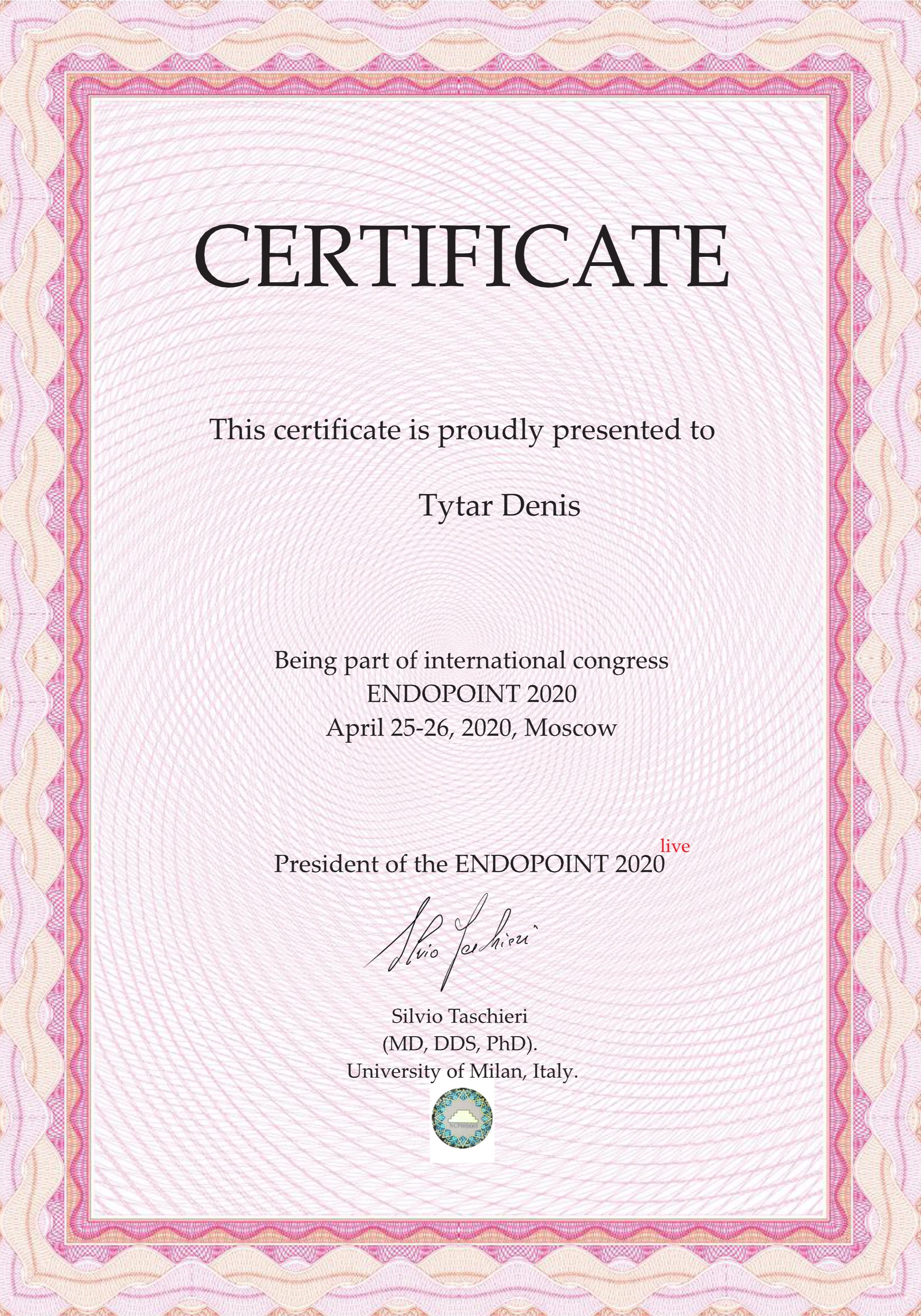 - Being part of international congress ENDOPOINT - 2020 год