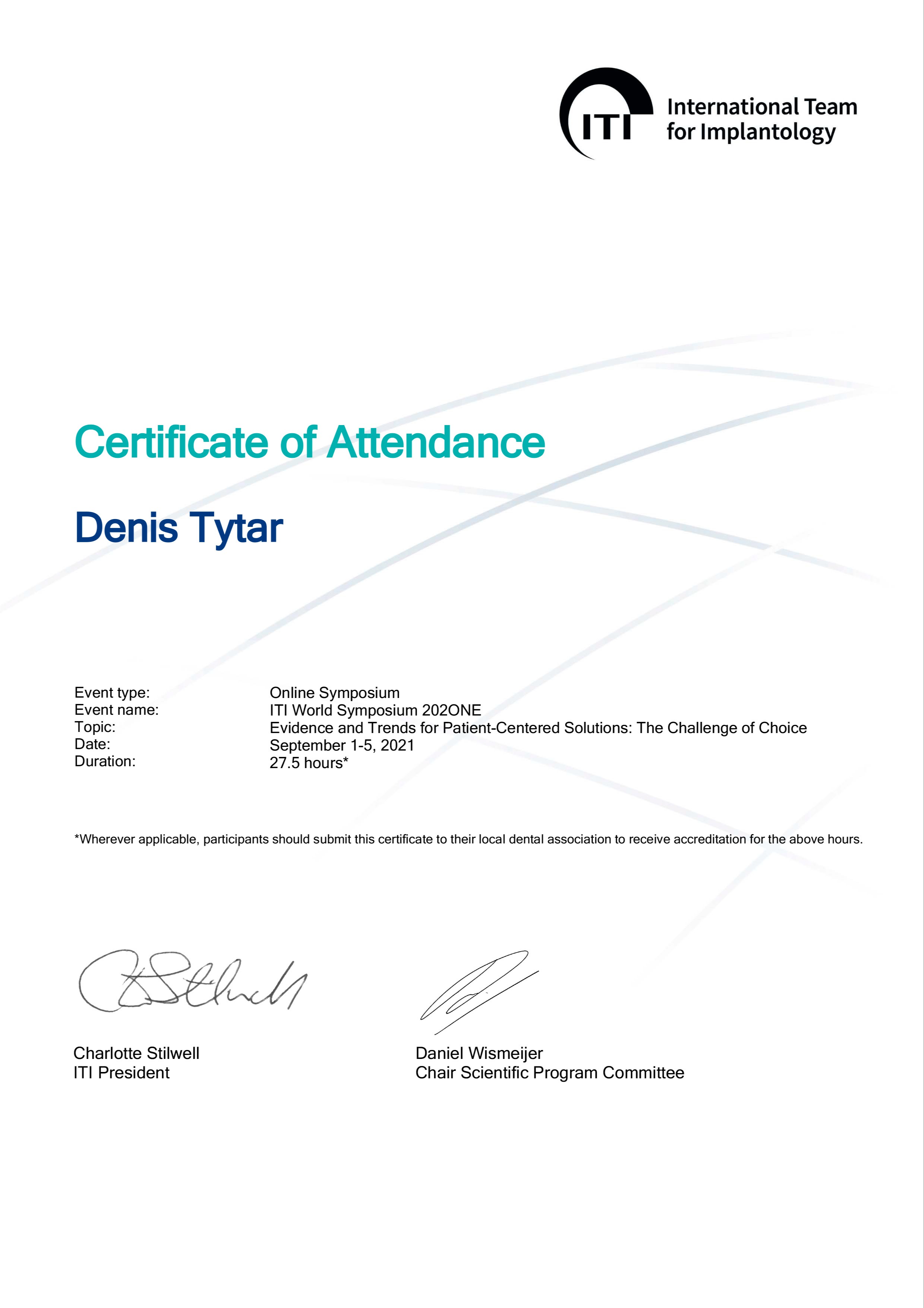 - Certificate of Attendance (ITI WS 202ONE - ITI) - 2021 год